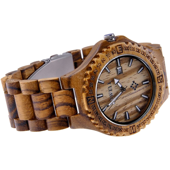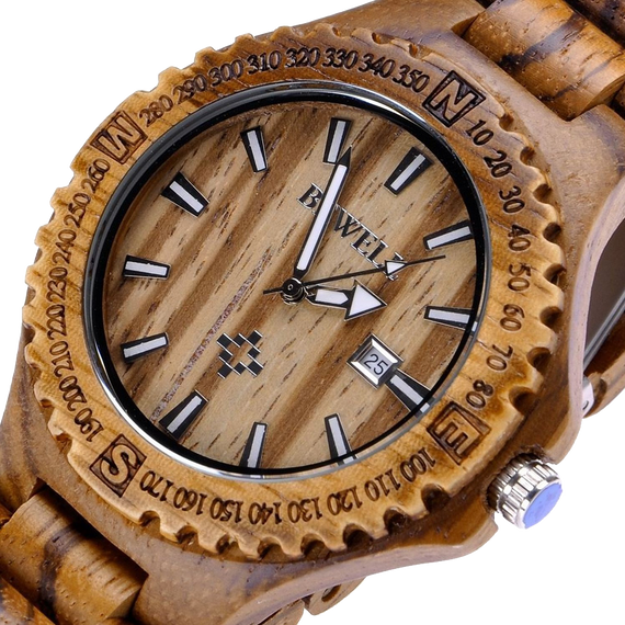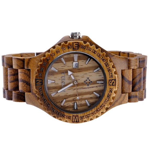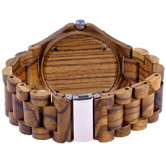 MEKU Handmade Wooden Wrist Watches Quartz with Solid Natural Zebrawood and Date Calendar