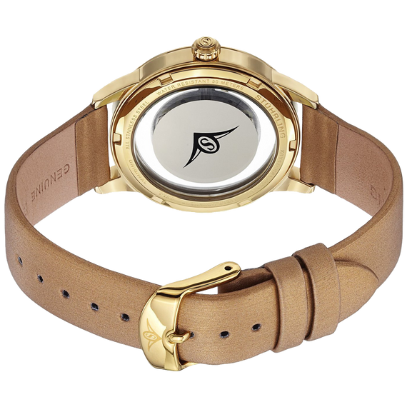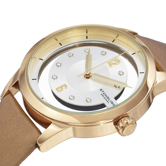 Stuhrling Original Womens 946L 03 Winchester Swarovski Crystal Accented 23k Gold Layered Watch with Champagne Leather Band